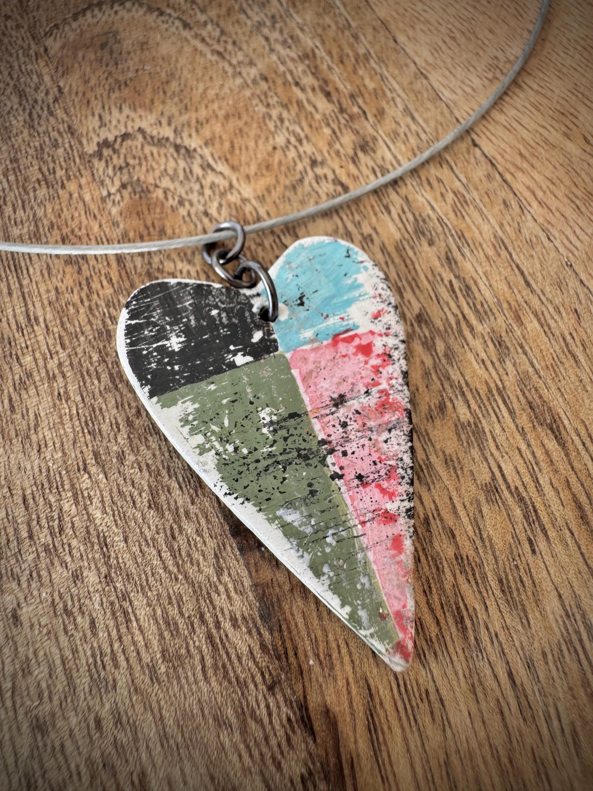 Tiny Thoughtful abstract paintings on handmade clay hearts. Art on hearts gives you "Art to Wear" for a unique choice in jewelry. Great for gifting.