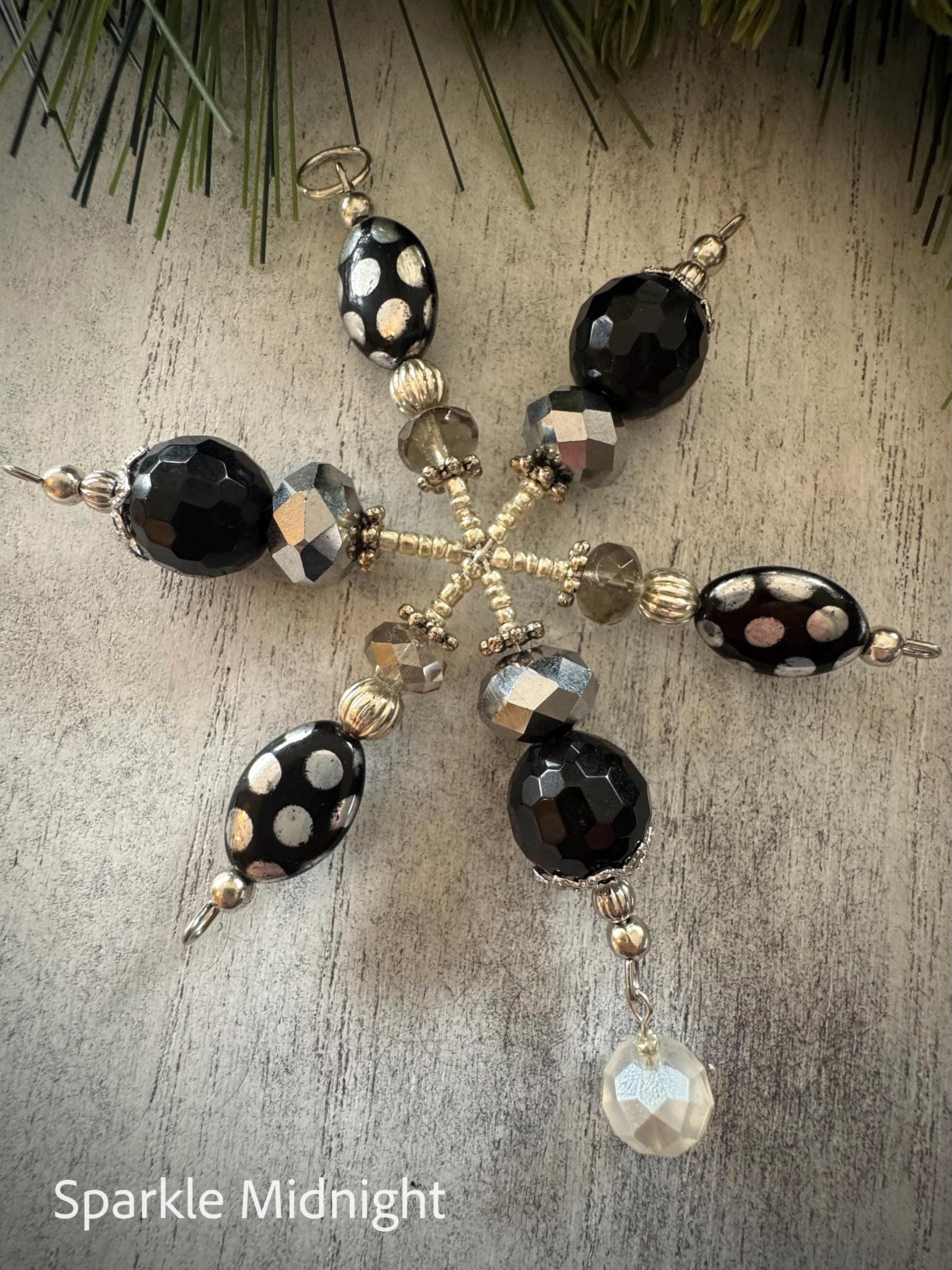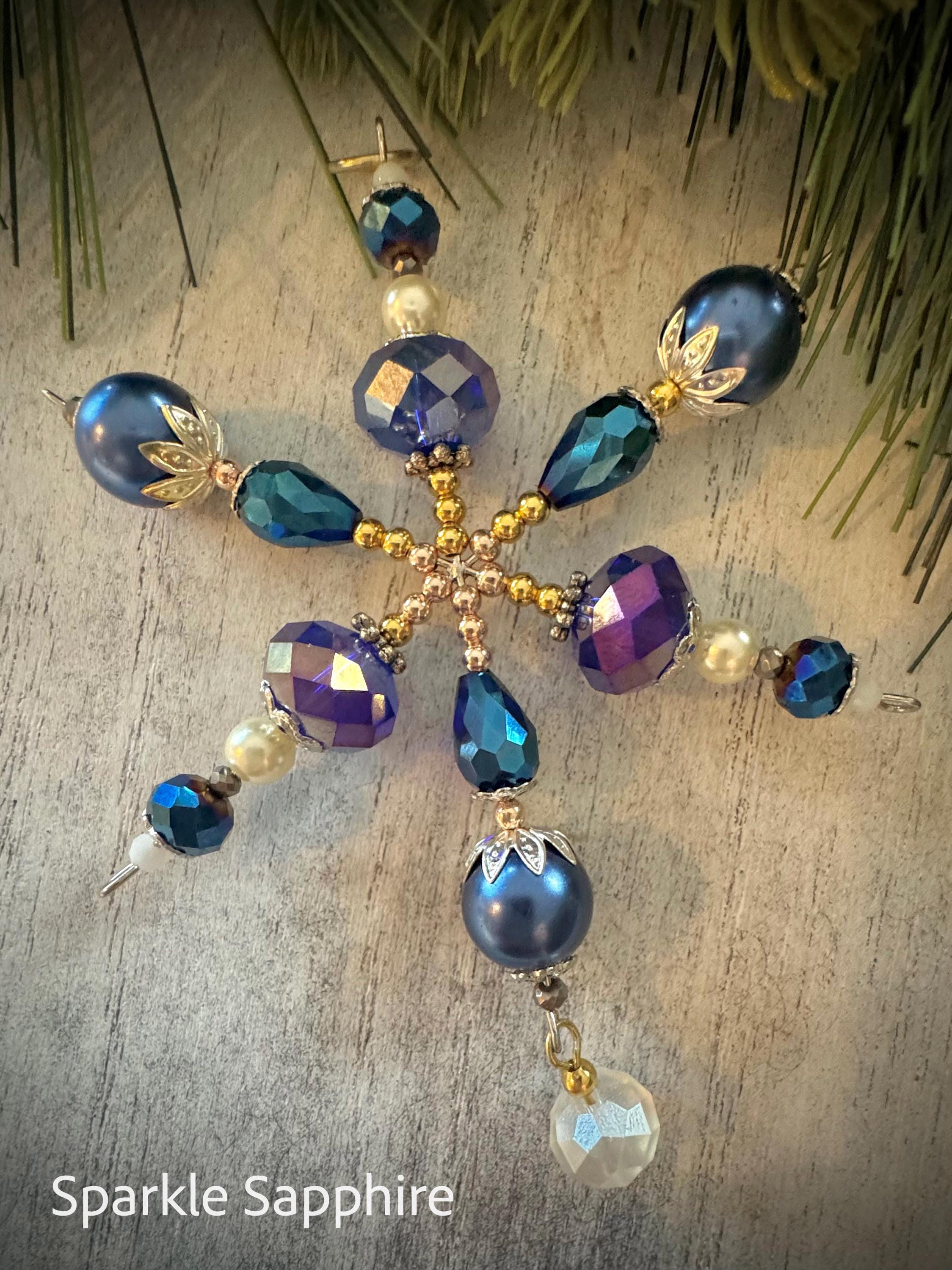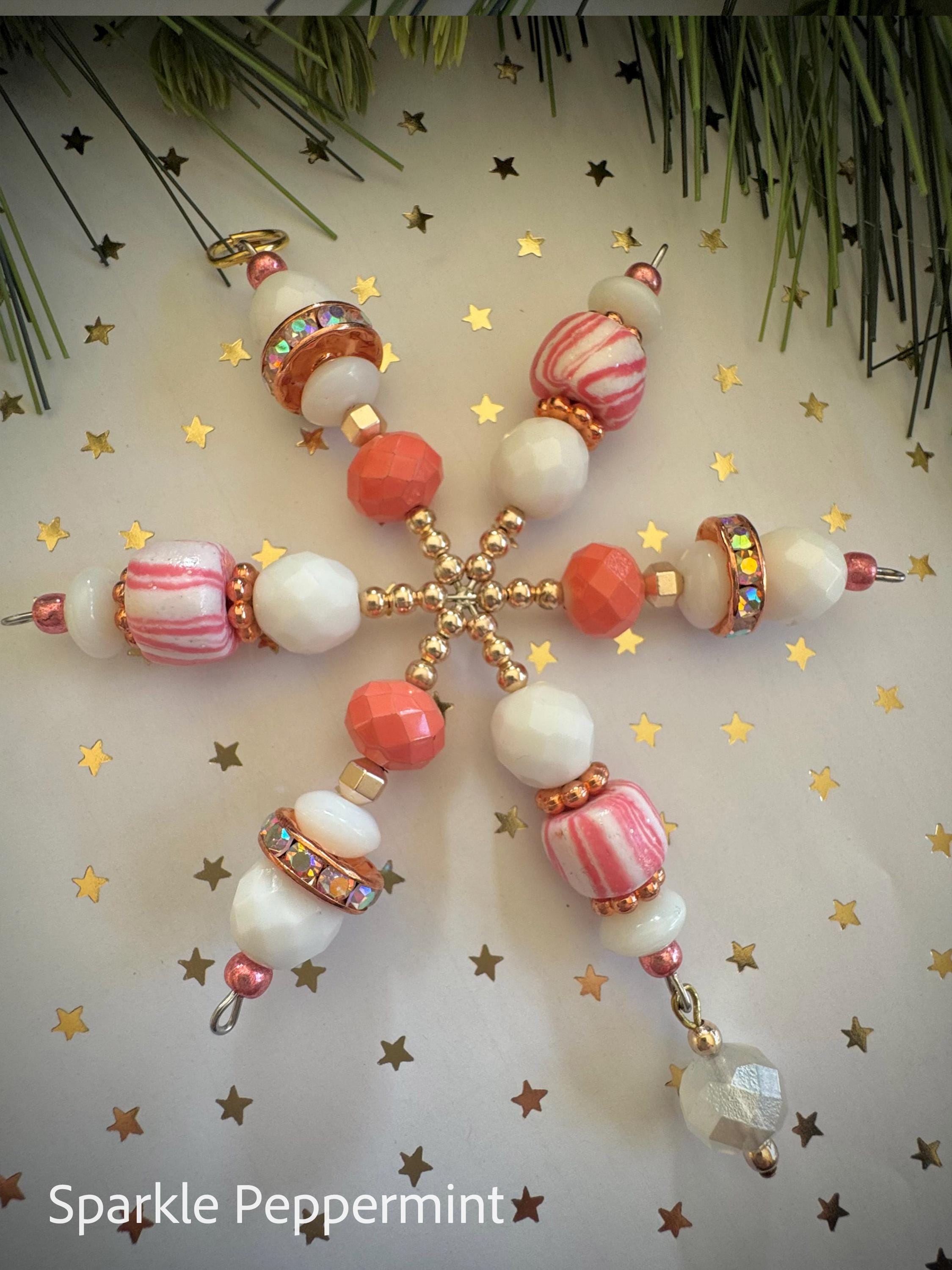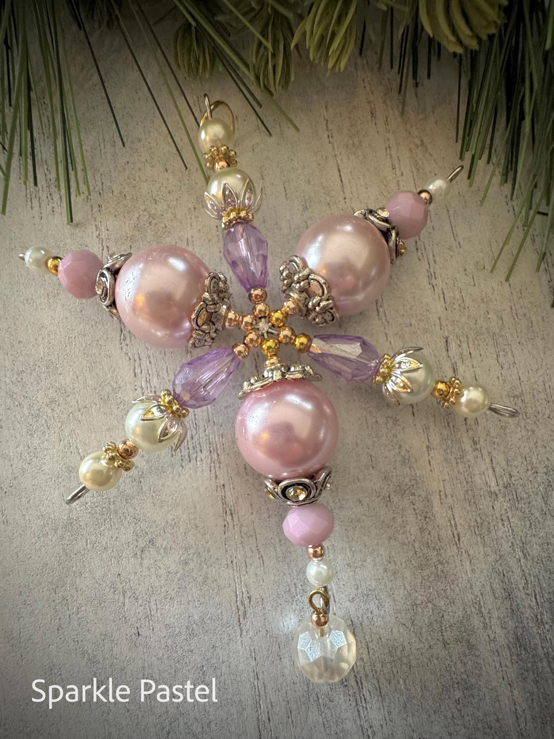 Snowflake Series—Ornaments…Jewelry…Gift attachment. “Dress a tree…wear on a chain…embellish a gift!” These are beautiful beaded ornaments, great for the tree, but can also be worn as a necklace (fun for a party), or added as a decorative embellishment on a gift.