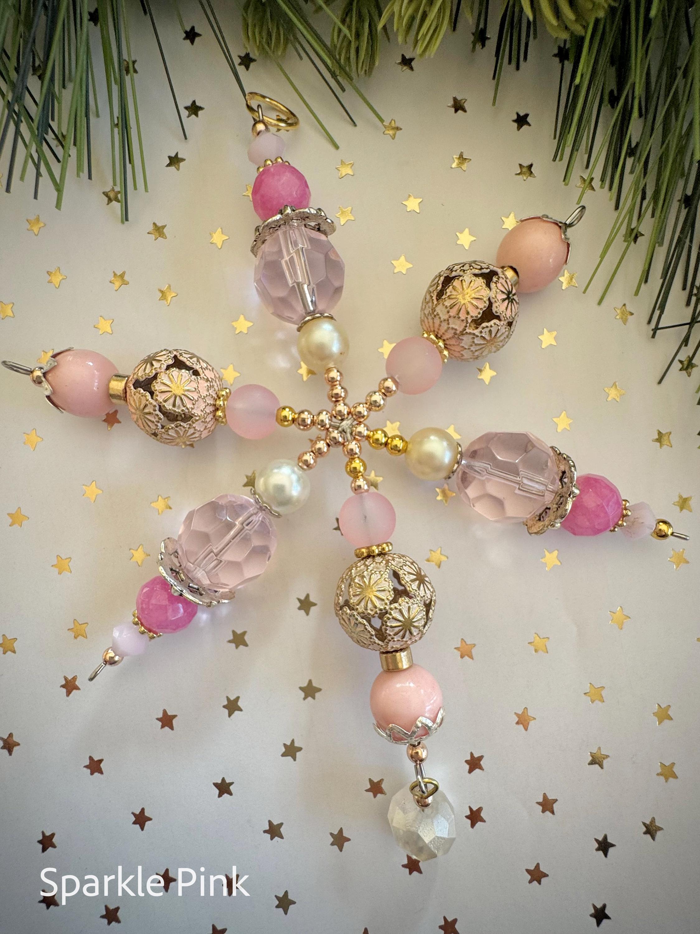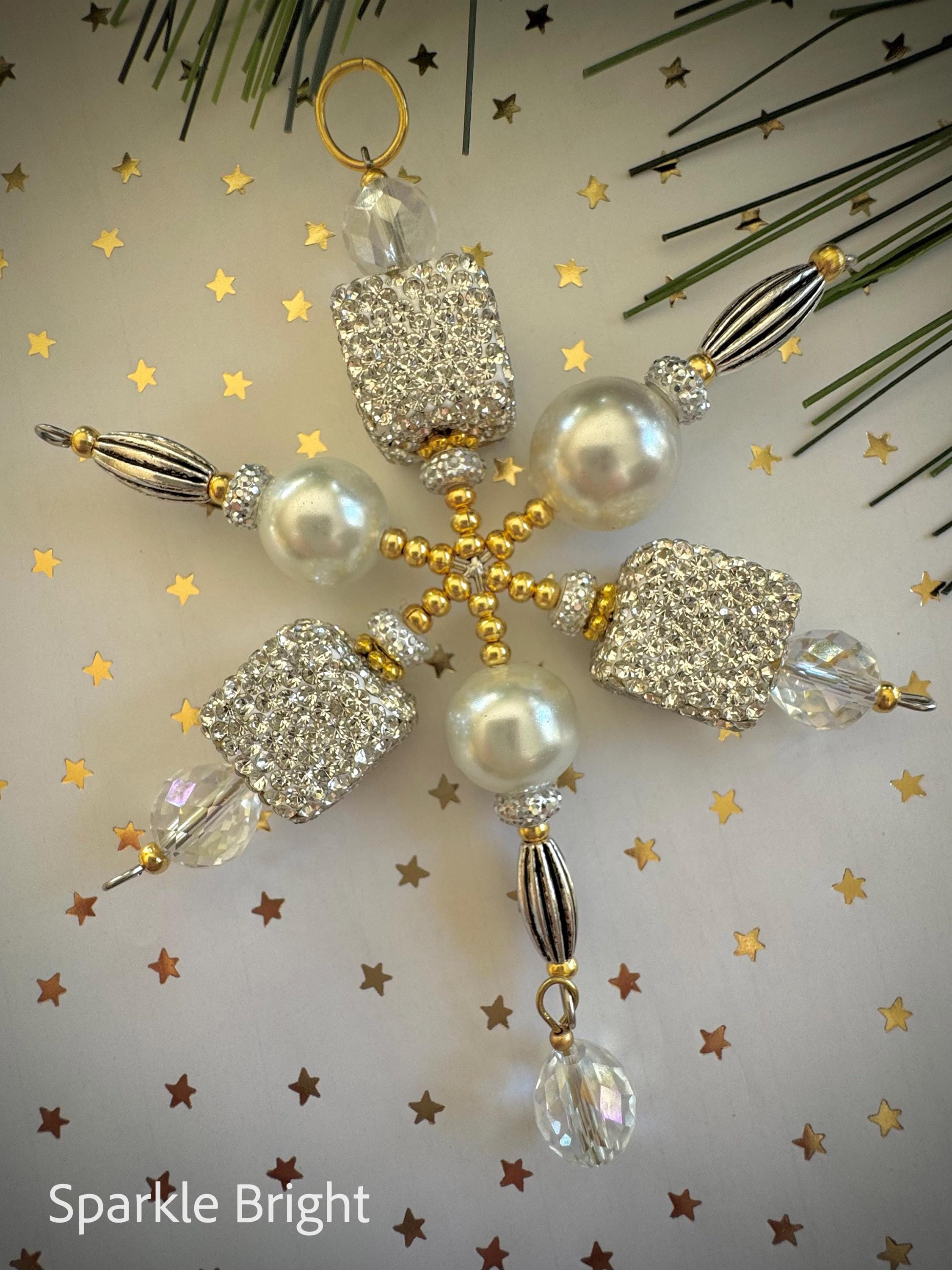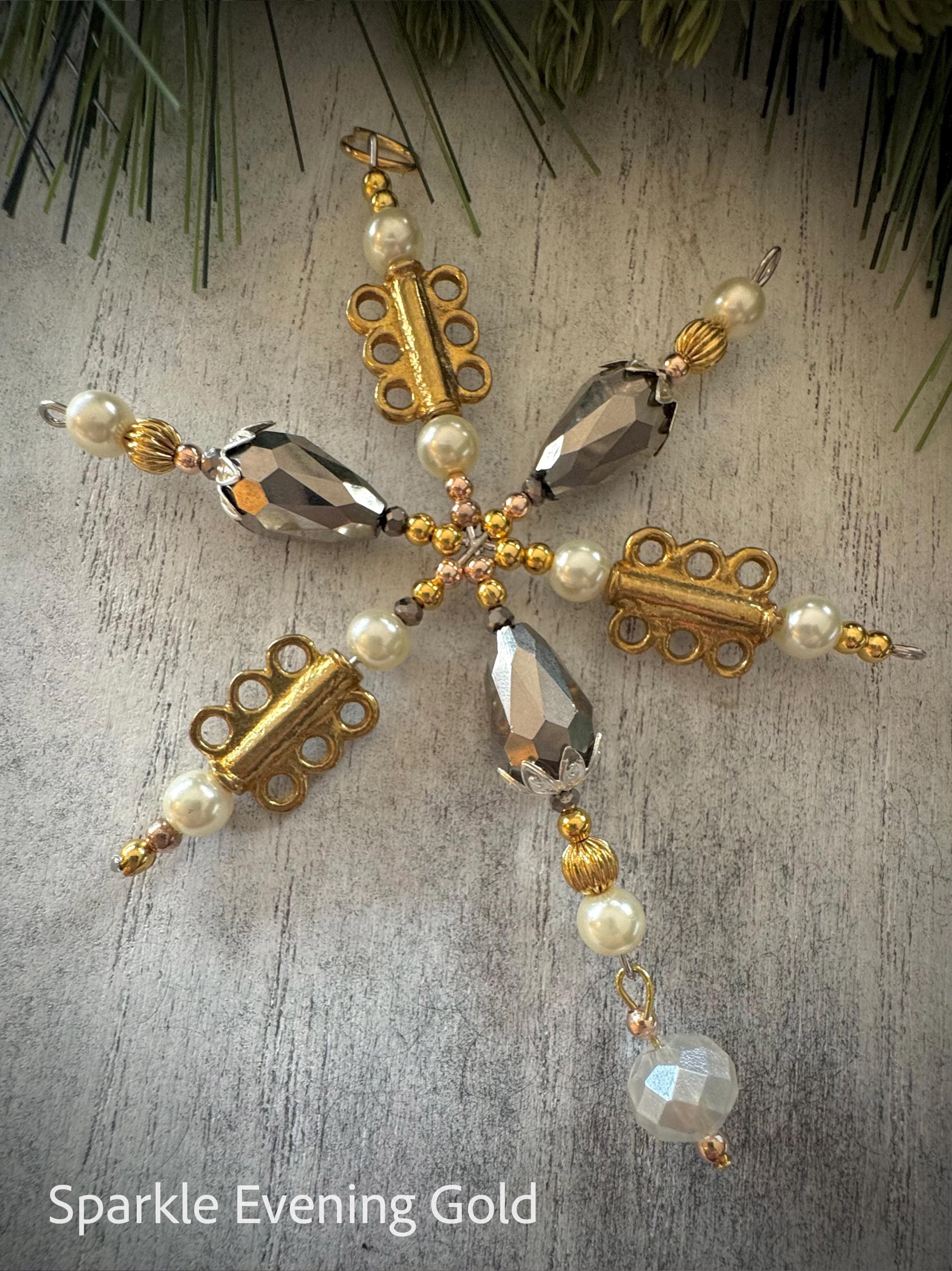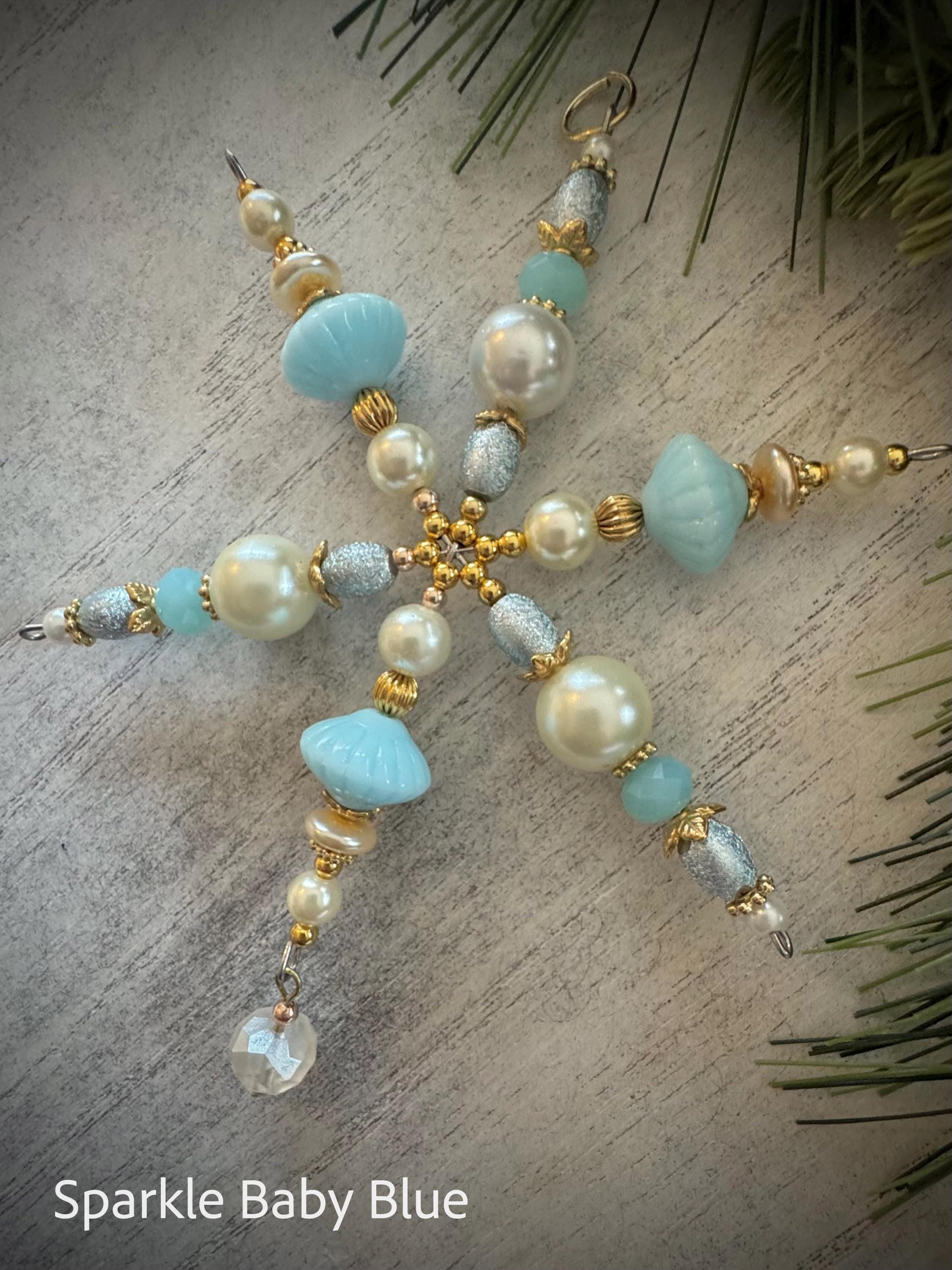 Snowflake Series—Ornaments…Jewelry…Gift attachment. “Dress a tree…wear on a chain…embellish a gift!” These are beautiful beaded ornaments, great for the tree, but can also be worn as a necklace (fun for a party), or added as a decorative embellishment on a gift.