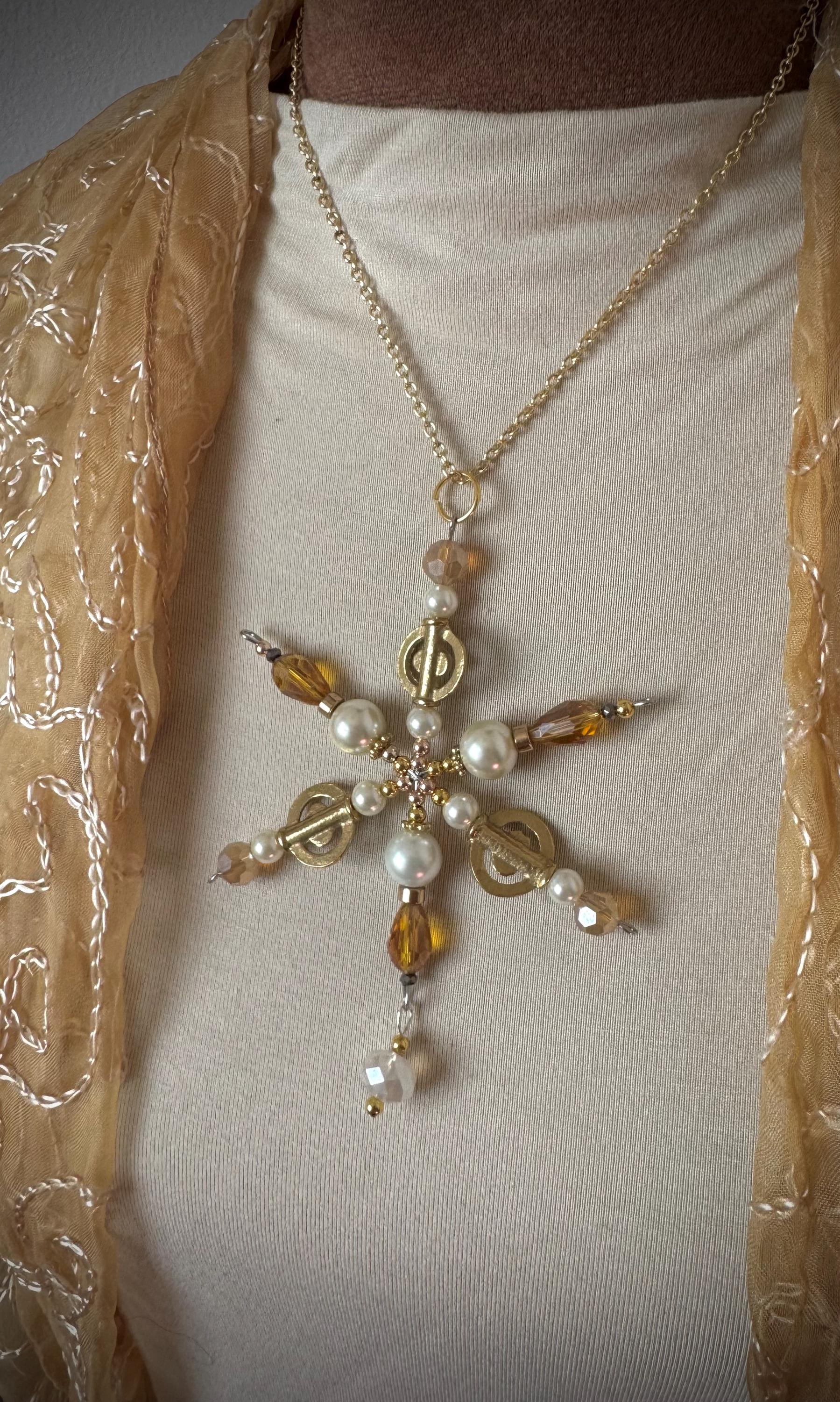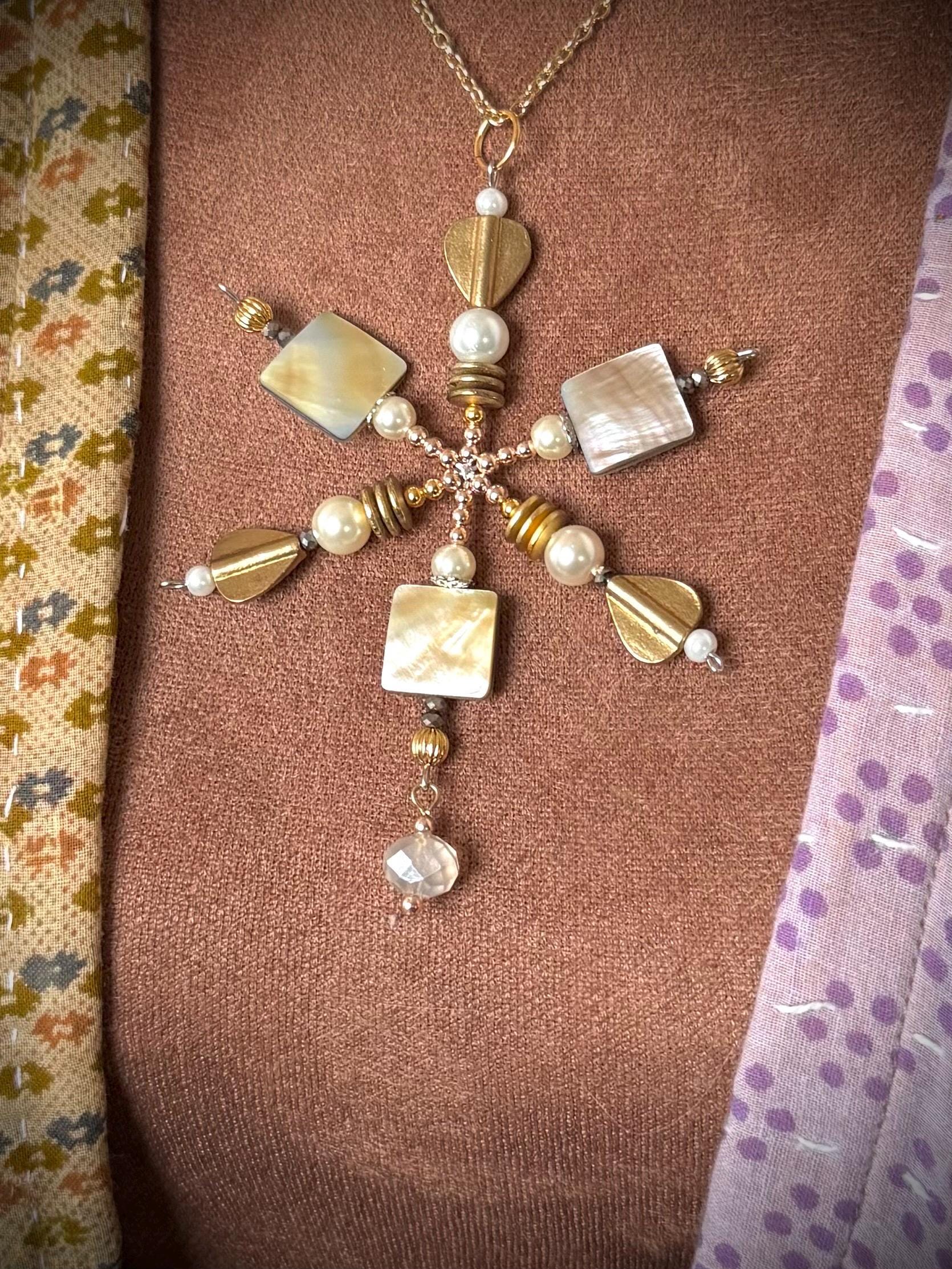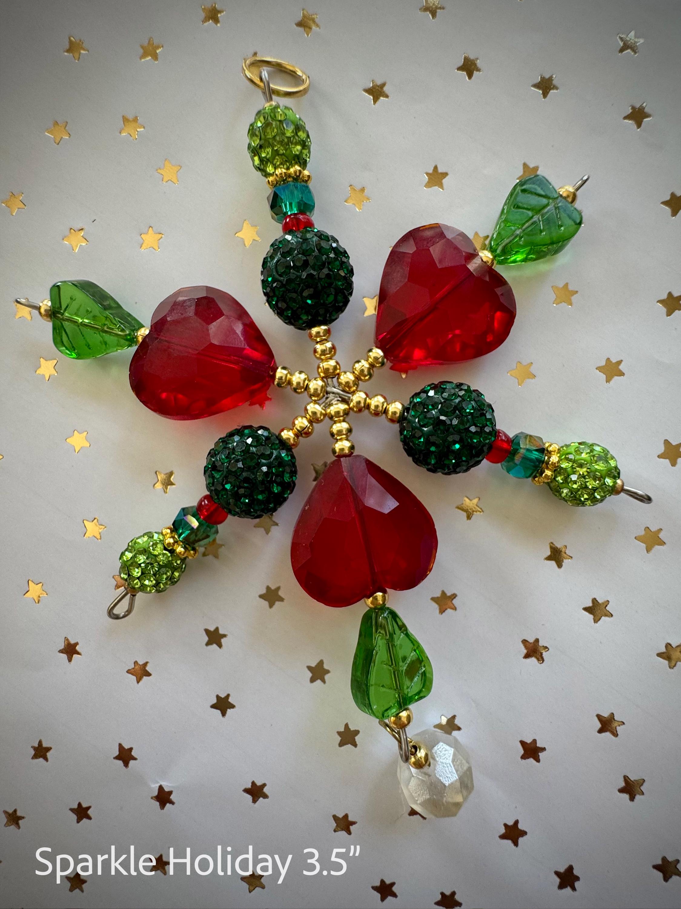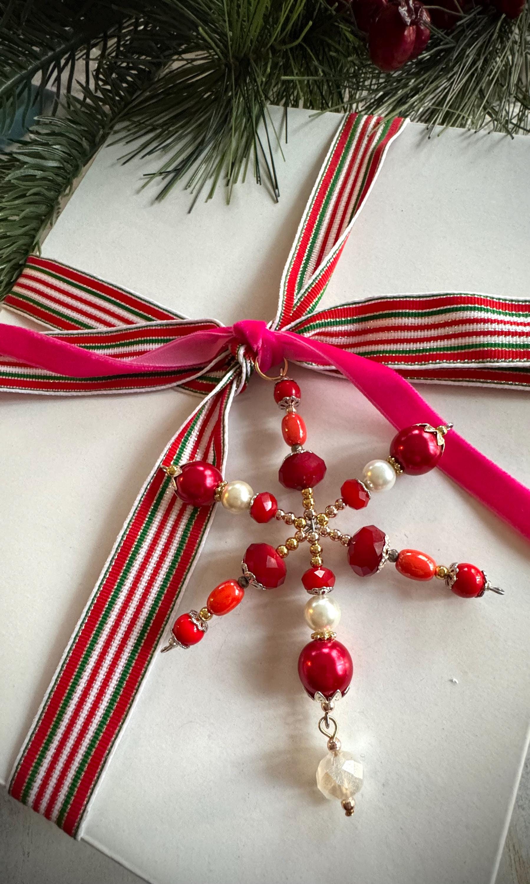Snowflake Series—Ornaments…Jewelry…Gift attachment. “Dress a tree…wear on a chain…embellish a gift!” These are beautiful beaded ornaments, great for the tree, but can also be worn as a necklace (fun for a party), or added as a decorative embellishment on a gift.