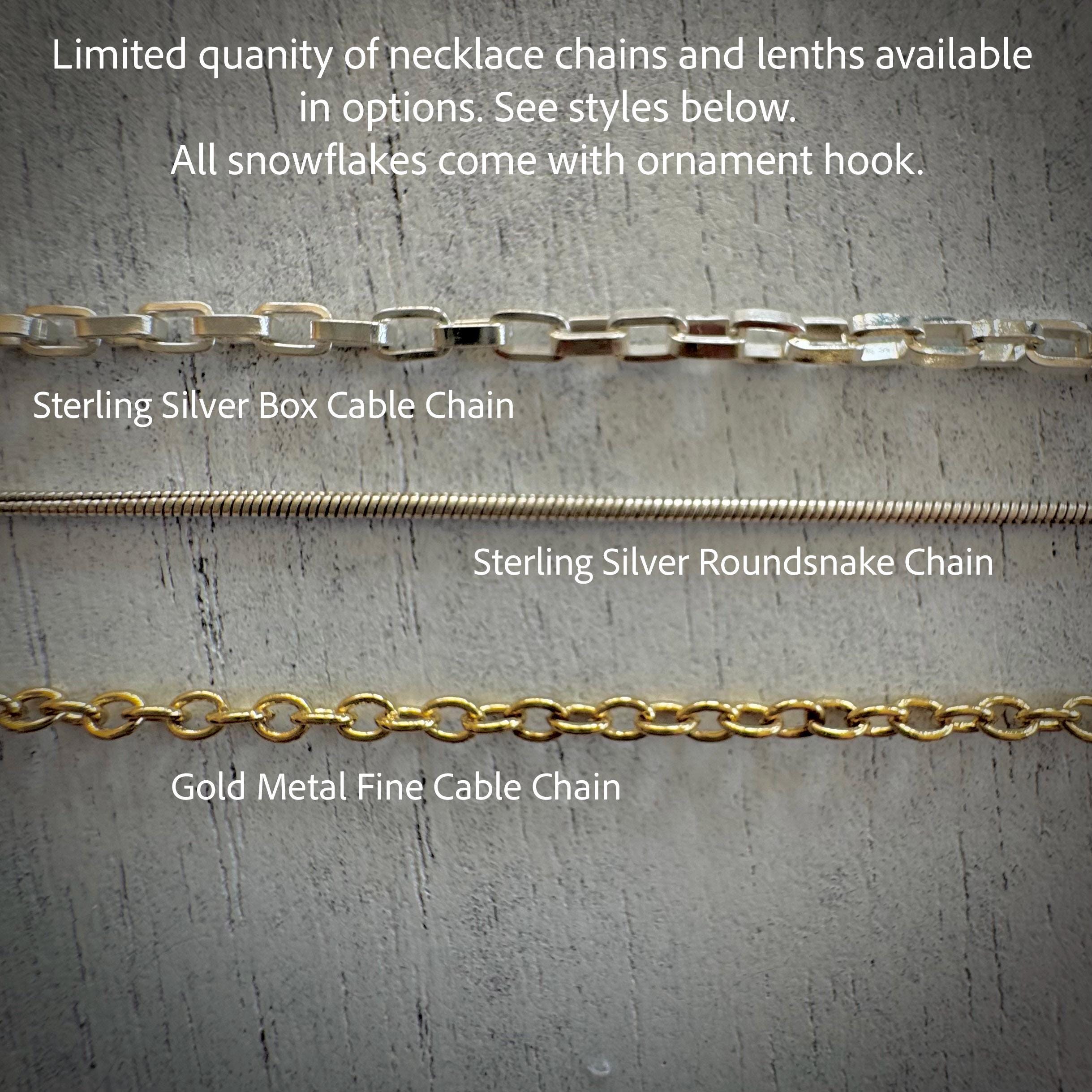 Necklace chains for the beaded snowflakes are available in the options section. Any chain should work and easy to slip on. If you are interested in purchasing a chain at a different length than offered, message me and I will try to accommodate.