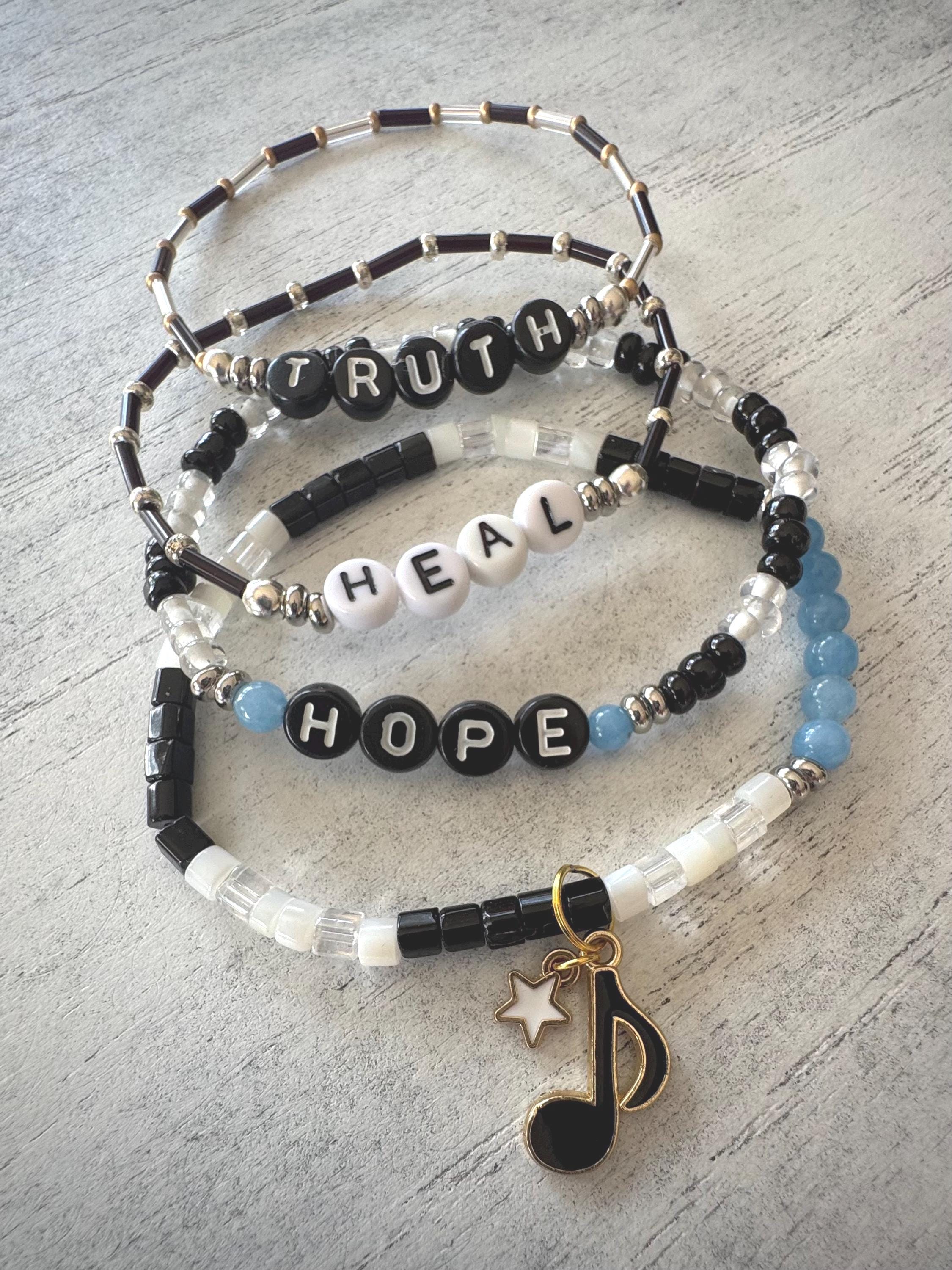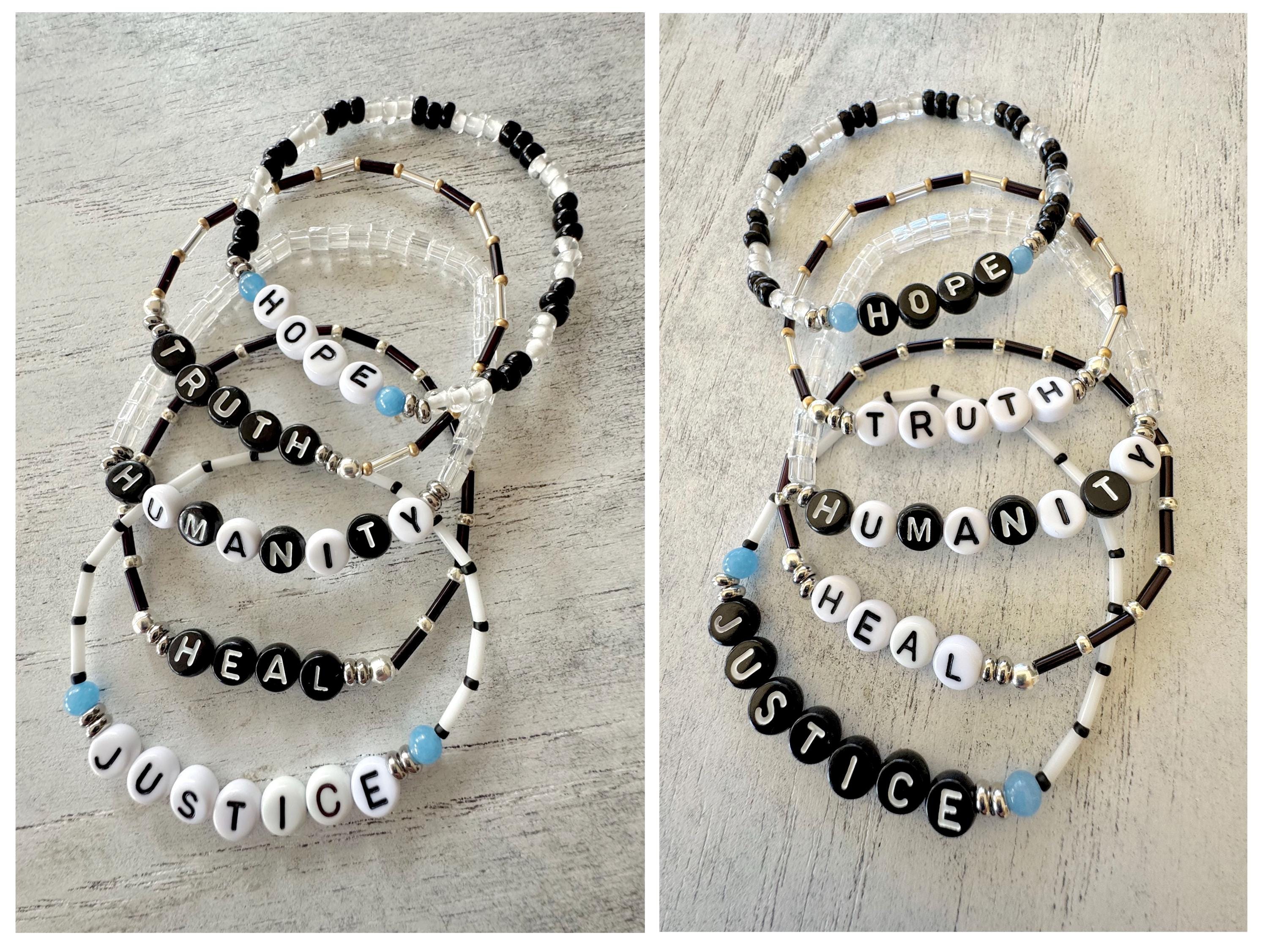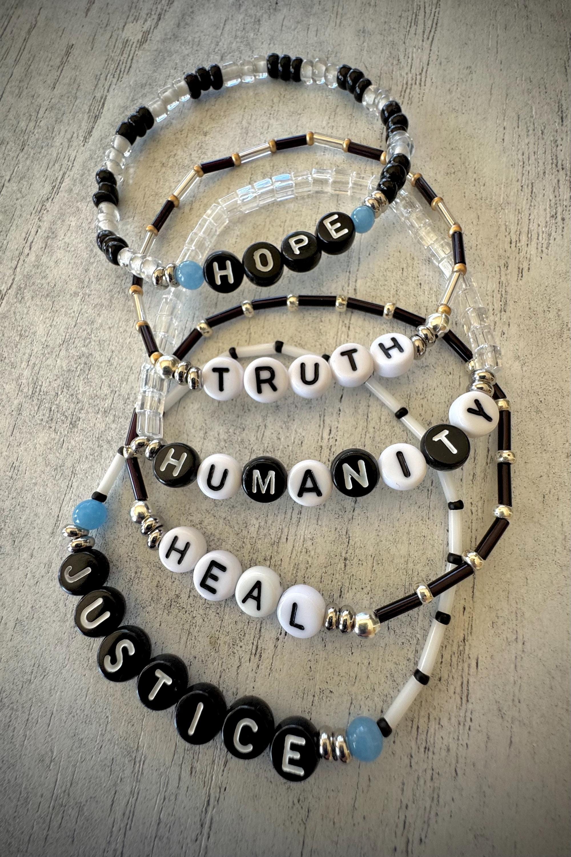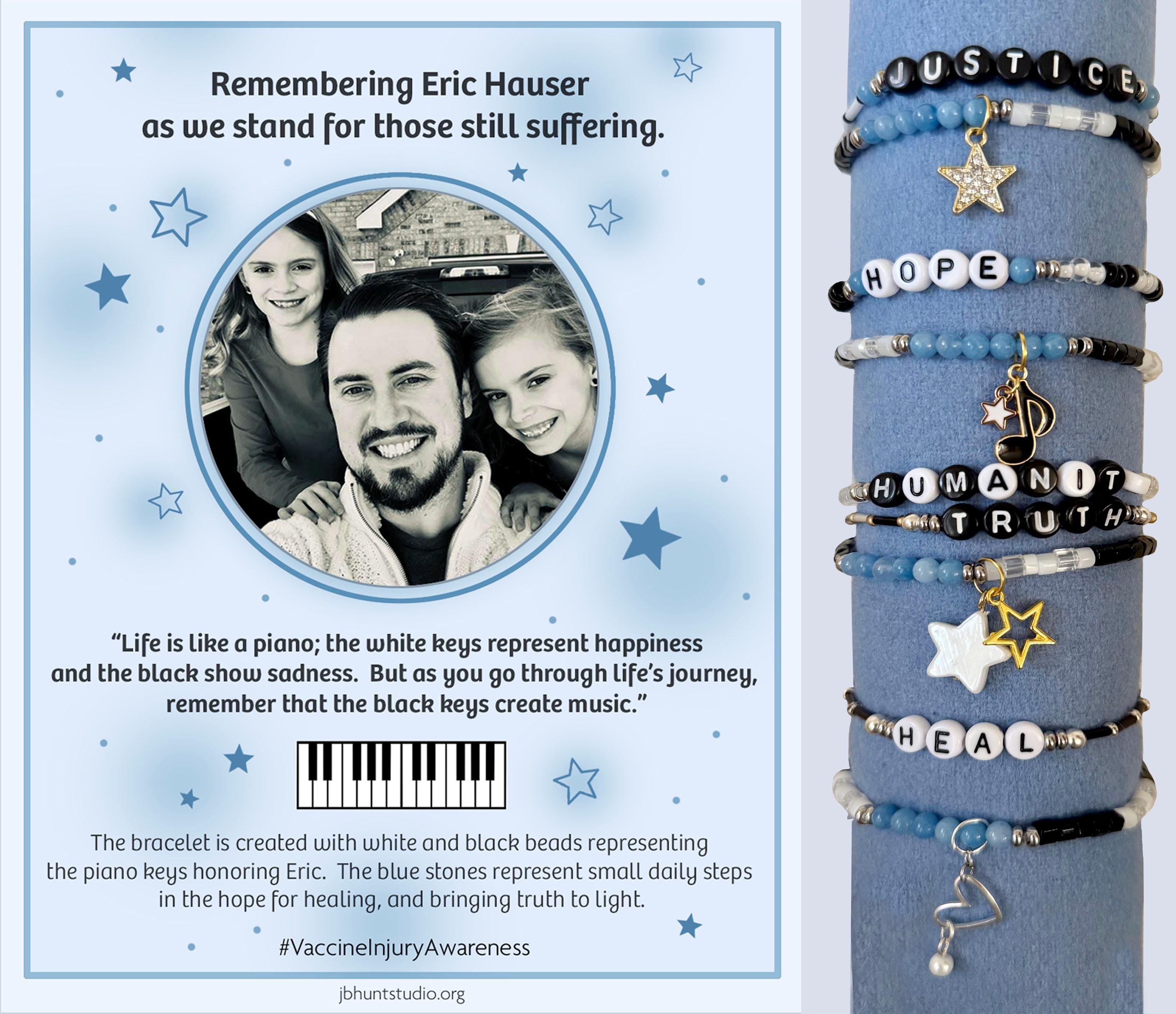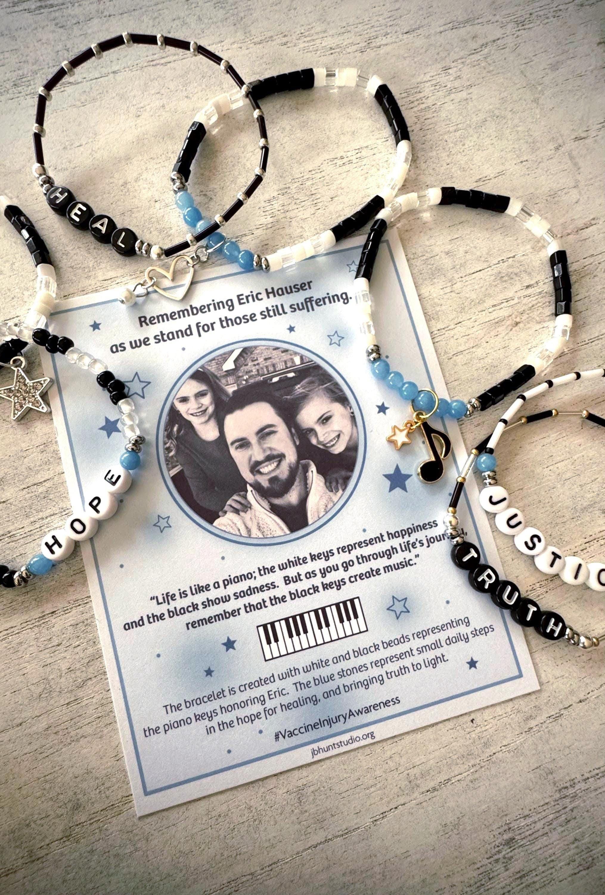 Coordinating Word Bracelets for Eric Hauser Remembrance Bracelets...Great to stack them on wrist to make a statement and help bring awareness for the vaccine injured. A portion of the profits goes to React19.